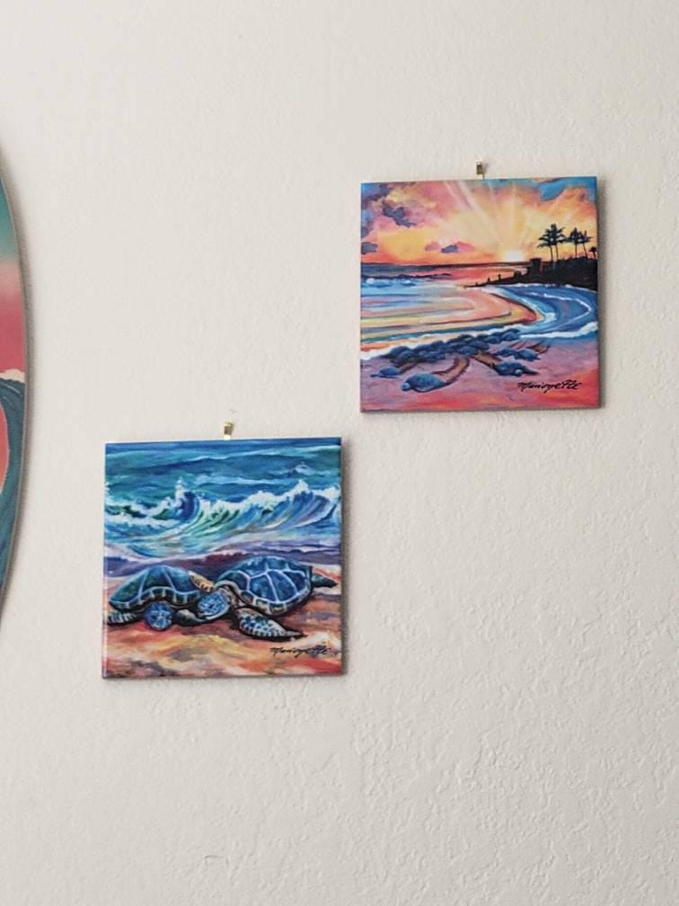 I had a small error in my order, Marguerite was so accommodating and helpful. The tile of the sea turtles and the print of Hanalei Bay Pier are beautiful and very nice quality. Thank you Marguerite and I love the smaller print of the pier!
